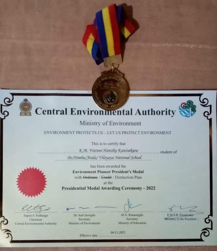 විලයාය ජාතික පාසල් පරිසර නියමු කණ්ඩායම ජනාධිපති සම්මාන ලබා ගත් අවස්ථාව.